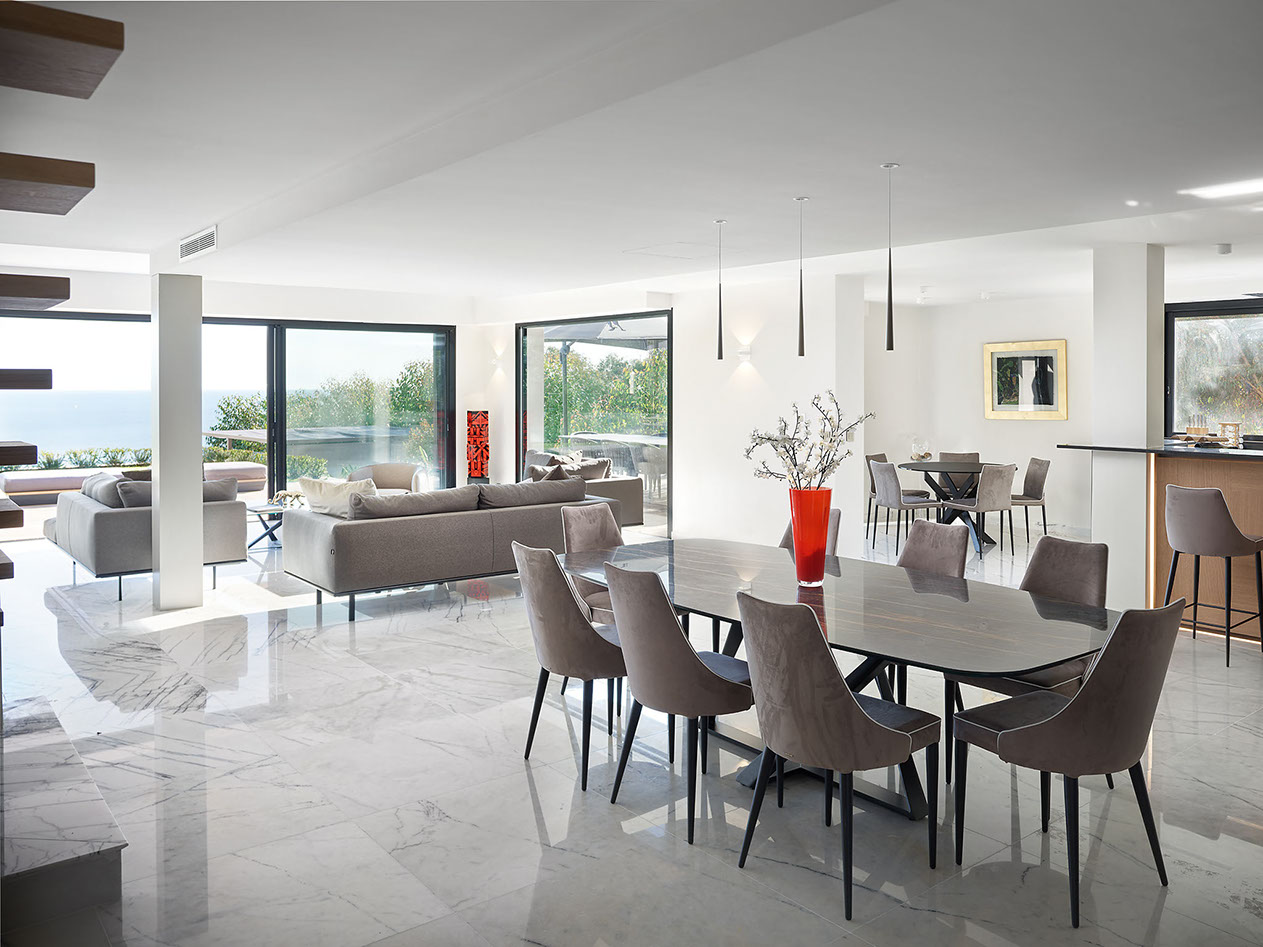 Dmitry worked his magic, giving the photos magazine quality. With his retouching skills, all the rooms became well lit. He erased a plant on a reception desk that my friend/client hated. Without a flaw, Dmitry managed to heal all backdrop surfaces (a sleek glassed in conference room with reflections, the aluminum frame, and the white marble top). He cleaned up cords and erased sale signs from store windows. In an Italian shoe store, there was a poster of a woman wearing a bikini and high heels. He replaced it with another official ad - a well-dressed woman getting off a private jet. He corrected blown-out store windows and improved many other details.